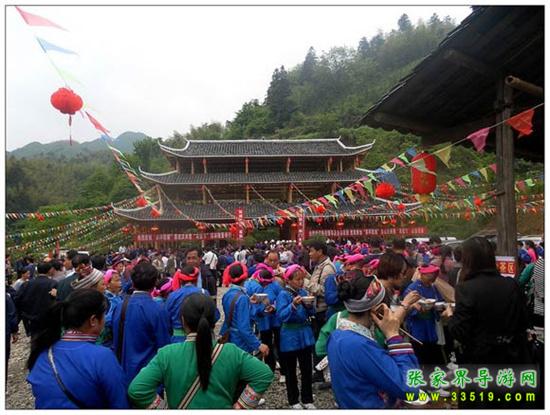二、訪苗山:徒步經(jīng)峽谷上對(duì)歌臺(tái),登龍脊山百步石頭天梯,觀奇異風(fēng)水“三龍奪寶”,賞龍鱗樹(shù)“九龍迎賓”,攔門酒、攔門歌、攔門鼓,參觀苗寨人家,在山崖邊的“情人坡”樹(shù)蔭下納涼,觀數(shù)人合抱的“九世古樹(shù)”、草帽大的“靈芝”,參與互動(dòng)的民俗表演。苗家中餐(農(nóng)家飯,迎客酒)后游神龍峽,走在鄉(xiāng)間的小路上,小溪、田埂,別有一番趣味,乘船返長(zhǎng)潭崗。