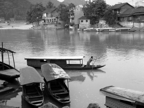 離開(kāi)花垣縣城25公里地,在酉水河邊,茶峒小鎮(zhèn)安靜地伏在那里。它的模樣浮現(xiàn)在沈從文的記憶里,是這樣的:“茶洞地方憑水依山筑城,近山的一面,城墻如一條長(zhǎng)蛇,緣山爬去。臨水的一面則在城外河邊留出余地設(shè)碼頭,灣泊小小篷船……貫穿各個(gè)碼頭有一河街,人家房子多一半著陸,一半在水,因?yàn)橛嗟赜邢蓿切┓孔幽辉O(shè)有吊腳樓”,直到今天,這種展現(xiàn)優(yōu)美意境的人文自然環(huán)境依然吸引著眾多游客前來(lái)。