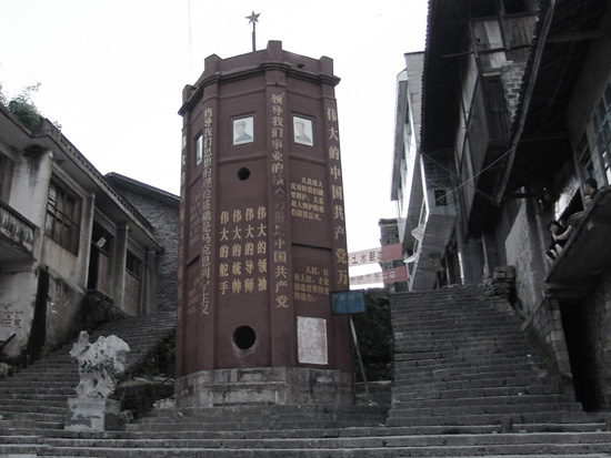清嘉慶七年(1802),這里建成了一座石堡城,設(shè)東西南北4門,門樓上各有4座炮臺(tái),420個(gè)垛口??谷諔?zhàn)爭(zhēng)時(shí)期,蔣介石的殘兵敗獎(jiǎng)經(jīng)此地逃往四川。解放戰(zhàn)爭(zhēng)時(shí)期,劉鄧大軍也是從這里推進(jìn)大西南。解放后,城墻城門雖被毀壞,但翠翠島、吊腳樓、石板街依然保存完整。