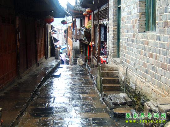 古鎮(zhèn)石板街遠(yuǎn)遠(yuǎn)望去,總感覺芙蓉鎮(zhèn)五里青石板街就像一本線裝古籍的書脊,書頁被上蒼之手打開,靜謐而又穩(wěn)重地?cái)傇谟纤舆?,那書頁上凌空的吊腳樓和發(fā)生在樓里樓外的悲歡離合便隨歲月而動,演繹出許多鏗鏘溫馨、跌宕起伏的故事來……