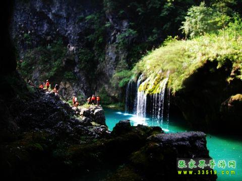 碧海洞天人體漂流,兩岸絕壁陡峭,巖石嶙峋美麗,灘險壁絕,水質清澈、大小潭無數(shù)、瀑布十余條迭起、險灘二十余處而著名。最經典一處,穿過水洞,眼前就是一幅水簾洞天的絕美風景:潭水如處女般恬靜,水質湛藍如玉,從鋪滿綠色藻類植物的山崖上流下,宛如珠簾,落入玉潭。一路的高掛瀑布,一路的幽潭碧水,整個穿越過程刺激驚險。