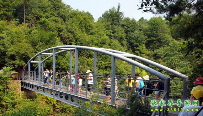 這是一座鋼棧橋,全長23.8米,凈跨20.4米,寬1.9米。下梁是兩根鋼質(zhì)工字梁,上梁是兩根鋼管拱梁,鏈接兩根工字梁的次鋼梁14根,水平鋼管5根。殼體小巧玲瓏,連接兩座結(jié)構(gòu)復雜的山峰,構(gòu)成一道離奇絢麗的連心景觀。