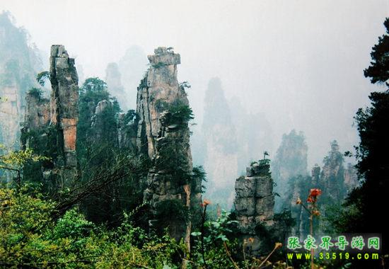 數(shù)以千計(jì)的奇峰怪石拔地而起森列谷中。在建筑師看來(lái),石峰如塔、如柱、如屏、如樓、如堡、如墻,鱗次節(jié)比、錯(cuò)落有致,展現(xiàn)了一幅宏偉的建筑藍(lán)圖;在藝術(shù)家看來(lái),石峰似人、似佛、似鳥、似獸、似花、似樹(shù),似瓊樓玉宇,生動(dòng)逼真唯妙唯肖,似一幅彩色的畫卷;在軍事家看來(lái),石峰是將、是兵,是鼓、是旗、是車、是馬,威武雄壯嚴(yán)陣待發(fā),象一支天降的軍隊(duì)。