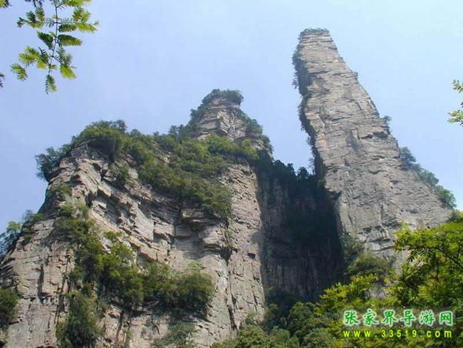與金鞭巖隔溪對峙,矗立在斜坡上,高200余米。上下粗細一般,峰體渾圓,色赤,呈70度角向金鞭溪傾斜,形似醉酒羅漢,欲倒不倒,似醉非醉,詼諧幽默。清嘉慶學(xué)士彭之臣在峰壁書寫一“忠”字。清道光四年(1824),貢生彭之運作《壁忠記》譯文以彰其勝。風(fēng)雨蒼桑,“忠”字因山石崩塌遭毀,《記》存于當?shù)刂緯小?/p>