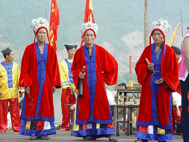 梯瑪俗稱土老司,意為敬神的人,土家族一年一度的“調(diào)年擺手”敬神祭祀活動,都由梯瑪一手執(zhí)掌,祭祀過程中梯瑪演唱的敬神之歌就叫“梯瑪神歌”。為真實演繹出湘西土家的神秘歷史,湘西幾位幸存的梯瑪大師、鬼谷神功的四十三代傳人、在歐美多次舉辦過演唱會的苗歌皇后龍仙娥,四上人民大會堂匯報演出的侗歌合唱團以及土家蜘蛛人等一批民間藝人參與演出。200多名演職人員中,年齡最大的96歲,最小的3歲,由湘西地區(qū)原生態(tài)演員和群眾演員組成。