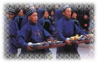 指著圓符,不久,蒙面者便神魂入定;似有神附體,慢慢地全身抖動起來,手舞足蹈,這就是已“進入陰間”。據(jù)傳過陰之人,雖蒙頭蓋面,也能辨別方向,隨法師的指使行事,陰間之事能有問必答,人們所要了解之事,也都從他們那里得到答復,并可以探求禳解之法。法師用法術(shù)指使他們?nèi)プ龈鳂邮虑椤5揭欢〞r間,法師用咒語報他們招回,他們在法師的指示下,陸續(xù)返回陽世清醒過來。若有個別不能返回,法師則加倍對他們施法,用刀指向他,并念咒畫符,強令返回。過陰之人蘇醒后,法師揭開頭蓋,這時個個面色慘白,目光遲鈍,如害一場大病。法師再施以復原之術(shù),使之慢慢復原。他們復原后,完全忘記陰間的事情。