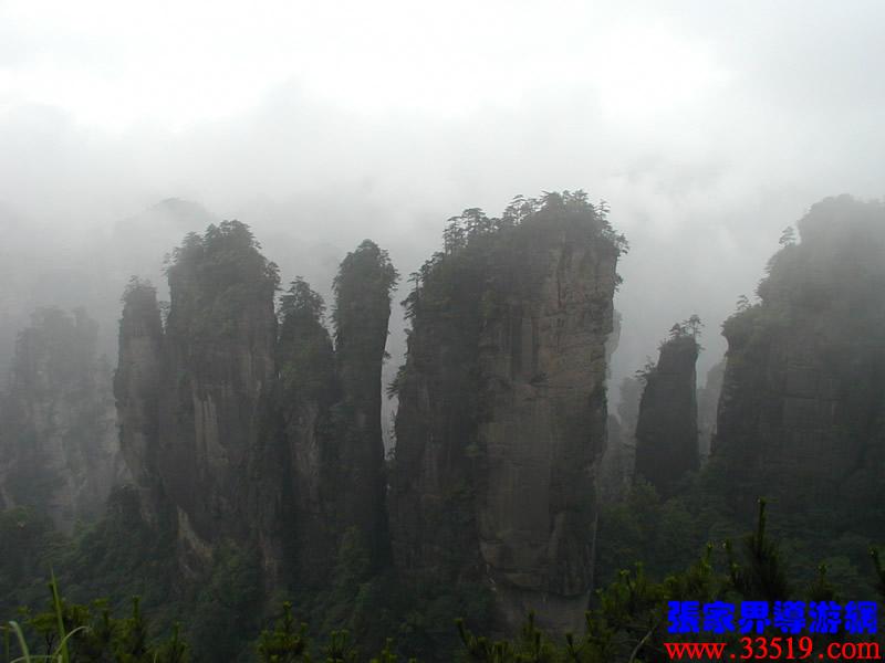 (山頂環(huán)覽線:五指峰、前花園、黑樅垴)朋友們!這里的每一座巖峰都是一件古老的藝術(shù)品,每一座巖峰都隱藏著大自然的無窮奧秘。面對如此壯美雄奇、氣象萬千的砂巖峰林風(fēng)光,幾年前,一位來自東北的女作家,就站在黃石寨(黃獅寨)上感嘆道:看了張家界的風(fēng)光,覺得真可以死了。接下來她又說,看了張家界的風(fēng)光,覺得更有理由好好活了。兩句話看起來前后矛盾,其實不然:前一句是說能見一到像張家界這樣奇美的風(fēng)光,此生足矣;后一句是說人生是如此美好,理應(yīng)更加珍愛生命。大家說對不對?