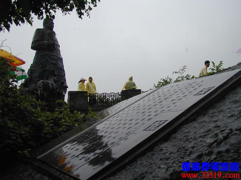 (賀龍銅像)賀龍?jiān)獛浭侵腥A人民共和國(guó)的開國(guó)元?jiǎng)?,人民解放軍的締造者之一。他就出生在天子山西邊桑植縣洪家關(guān)的一個(gè)農(nóng)民家庭,從兩把菜刀砍鹽局首義起,一生充滿傳奇色彩,元帥家鄉(xiāng)流傳著無數(shù)關(guān)于他的故事與傳說。天子山一帶曾經(jīng)是賀龍、任弼時(shí)、肖克、王震等將軍打過游擊的地方。一回,賀龍?jiān)阼尮乃幻駡F(tuán)包圍了,當(dāng)?shù)乩习傩占敝猩?,把賀龍卷在斗墊里,躲過了殺身之禍。這個(gè)故事至今還在這一帶流傳。