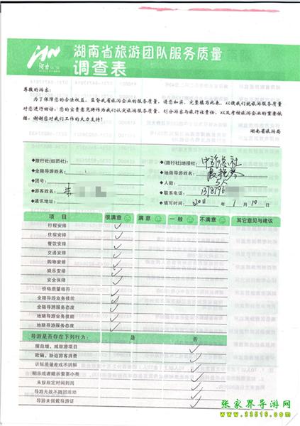 2011年7月10日朱先生一行5人旅游質(zhì)量反饋