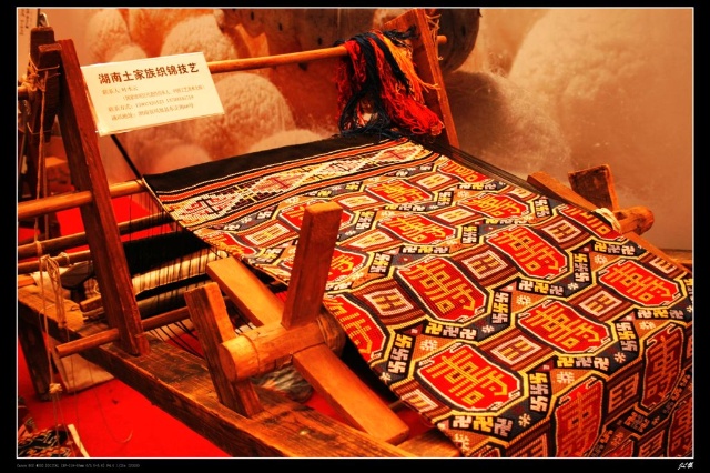 土家織錦的歷史悠久。早在漢代,它就初露頭角?!逗鬂h書(shū).西南蠻夷傳》記載,“武陵蠻織績(jī)木皮,染以草,衣裳斑斕……”清同治年間編修的《永定縣志》也說(shuō):“土錦績(jī)五顏經(jīng)線為之,文彩斑斕可愛(ài),使用以為被,或作衣裙,或作巾,故又稱(chēng)‘筒巾’。”