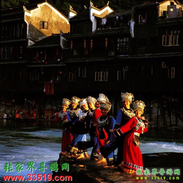 金鞭溪因流經(jīng)金鞭巖而得名,全長5710米,穿行于絕壁奇峰之間,溪谷有繁茂的植被,溪水四季清澈,被稱為“山水畫廊”、“人間仙境”。有詩贊曰:“清清流水青青山,山如畫屏人如仙,仙人若在畫中走,一步一望一重天”。途中你會看到點(diǎn)歌臺,那里有土家姑娘時刻準(zhǔn)備為游人唱民族歌曲,只要付十元錢她們就會為你引吭高歌,當(dāng)然,如果你不想花這個錢,也可以在一邊聽聽別人點(diǎn)的歌,聽完后走人。